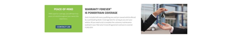 Routine maintenance is critical to ensure optimum performance of your vehicle. You have the option of servicing your vehicle at a repair facility of your choice. Simply follow the maintenance schedule outlined in your Warranty Forever® agreement and you're covered for life.