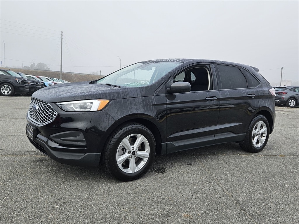 Agate Black Metallic 2024 Ford Edge SE AWD 8-Speed Automatic EcoBoost 2.0L I4 GTDi DOHC Turbocharged VCT 2.0L EcoBoost, AWD, 3.80 Axle Ratio, 4-Wheel Disc Brakes, 6 Speakers, ABS brakes, Air Conditioning, Alloy wheels, AM/FM radio: SiriusXM with 360L, AM/FM Stereo, Auto High-beam Headlights, Automatic temperature control, Brake assist, Bumpers: body-color, Cloth Bucket Seats, Compass, Delay-off headlights, Driver door bin, Driver vanity mirror, Dual front impact airbags, Dual front side impact airbags, Electronic Stability Control, Emergency communication system: SYNC 4 911 Assist, Equipment Group 100A, FordPass Connect, Four wheel independent suspension, Front & Rear Floor Liners w/Carpet Mats, Front anti-roll bar, Front Bucket Seats, Front Center Armrest w/Storage, Front dual zone A/C, Front reading lights, Fully automatic headlights, Illuminated entry, Knee airbag, Low tire pressure warning, Occupant sensing airbag, Outside temperature display, Overhead airbag, Overhead console, Passenger door bin, Passenger vanity mirror, Power door mirrors, Power steering, Power windows, Rear anti-roll bar, Rear reading lights, Rear seat center armrest, Rear window defroster, Rear window wiper, Remote keyless entry, SiriusXM w/360L, Speed-Sensitive Wipers, Split folding rear seat, Spoiler, Steering wheel mounted audio controls, SYNC 4A w/Enhanced Voice Recognition, Tachometer, Telescoping steering wheel, Tilt steering wheel, Traction control, Trip computer, Variably intermittent wipers, Wheels: 18" Sparkle Silver-Painted Aluminum.