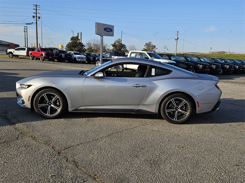 Iconic Silver Metallic 2025 Ford Mustang EcoBoost RWD 10-Speed Automatic EcoBoost 2.3L I4 GTDi DOHC Turbocharged VCT ABS brakes, Alloy wheels, Compass, Electronic Stability Control, Front dual zone A/C, Illuminated entry, Low tire pressure warning, Remote keyless entry, Traction control.