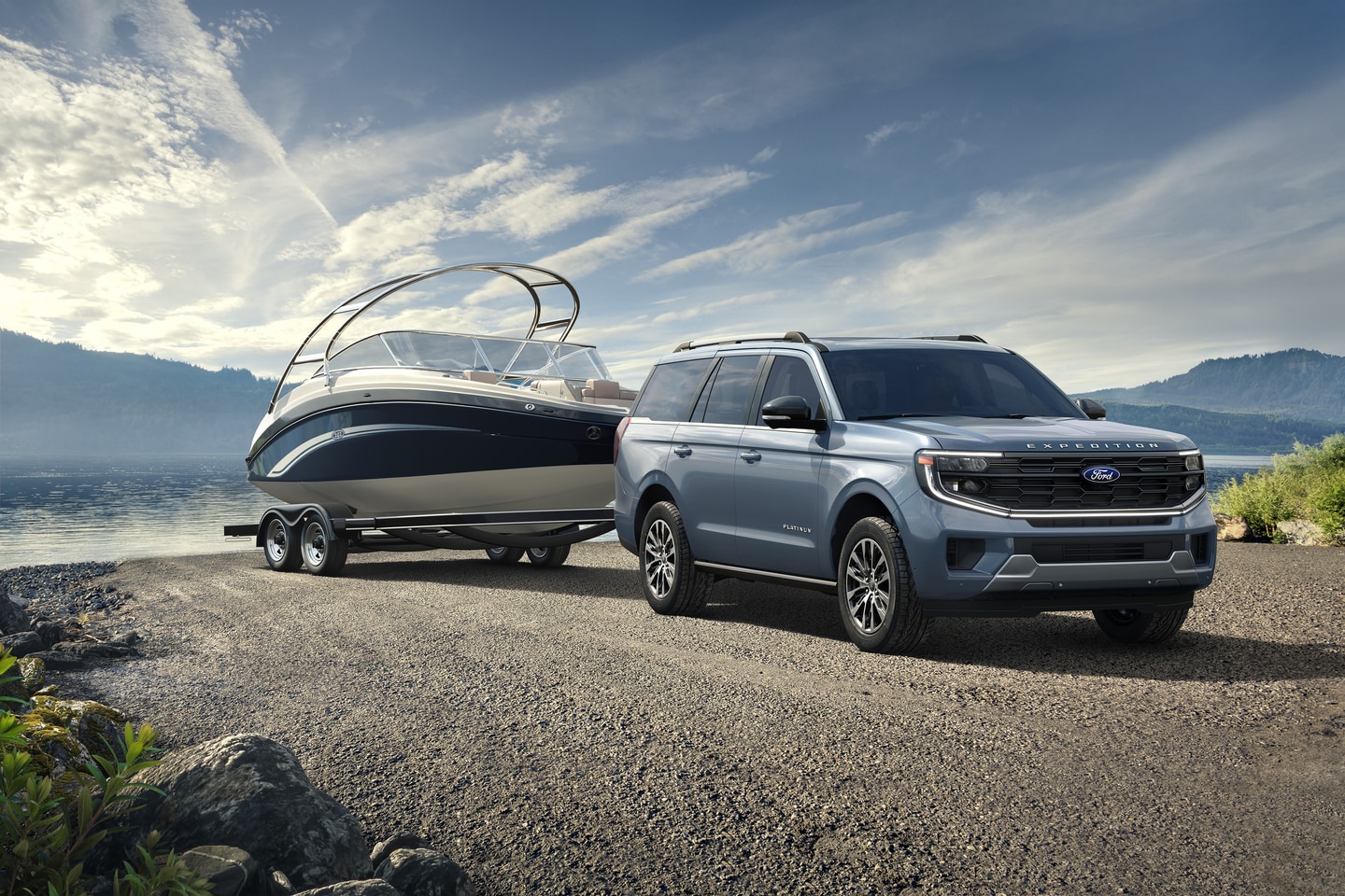 The 2025 Expedition is powered by a twin-turbocharged 3.5-liter V6 EcoBoost engine producing 400 horsepower and 480 pound-feet of torque. A 440-horsepower high-output version is available on the Timberline and Stealth Performance trim levels. Both engines are mated to a 10-speed automatic transmission with SelectShift capability. Rear-wheel drive is standard, with available Intelligent 4WD with Terrain Management System. When properly equipped, the Expedition offers best-in-class towing of up to 9,300 pounds. An available Continuous Controlled Damping (CCD) suspension provides a smooth ride and confident handling.