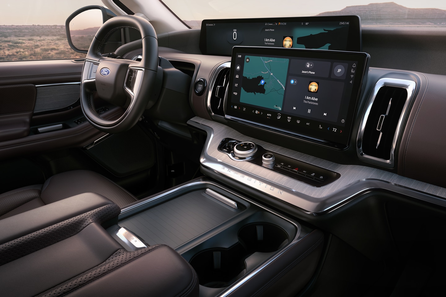 Stay connected and entertained with the Expedition's advanced technology features. The available 15.5-inch portrait touchscreen runs Ford's latest SYNC® 4 infotainment system with enhanced voice recognition, wireless Apple CarPlay and Android Auto compatibility, and cloud-based connectivity. A 12.4-inch digital instrument cluster and an available 22-speaker B&O Unleashed sound system by Bang & Olufsen provide an immersive audio experience. The Expedition also offers the BlueCruise hands-free highway driving system and Ford's Co-Pilot360 suite of active safety technologies.